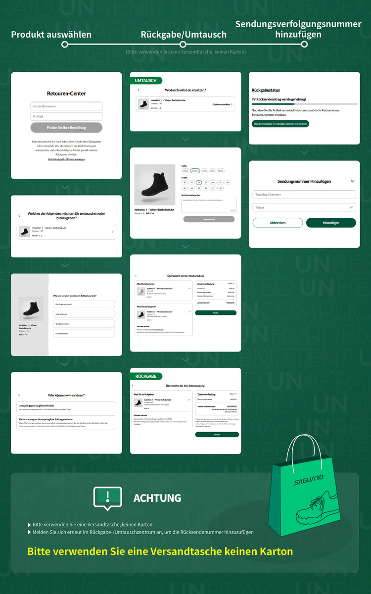 Bitte kontaktieren Sie uns, wenn Sie Artikel an die nächstgelegene Rücksendeadresse zurücksenden möchten. Sie werden so schnell wie möglich eine Antwort erhalten.