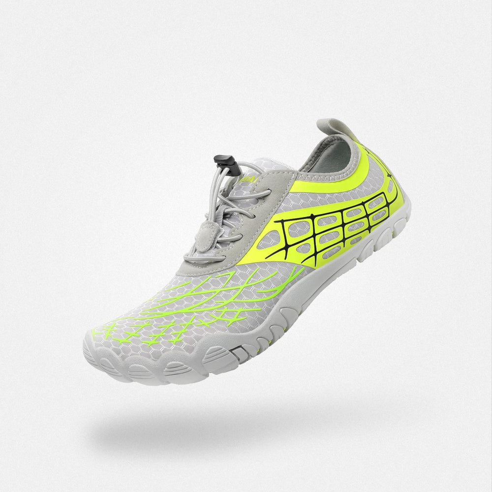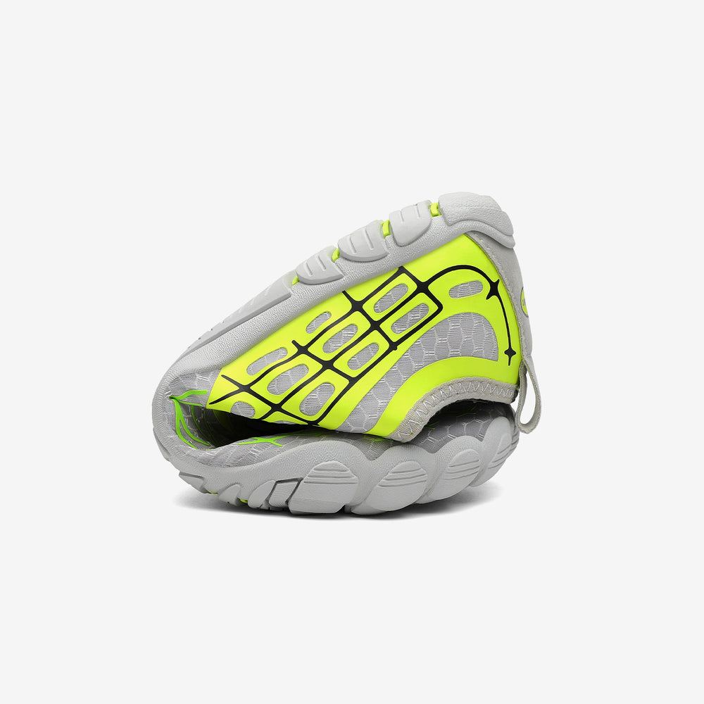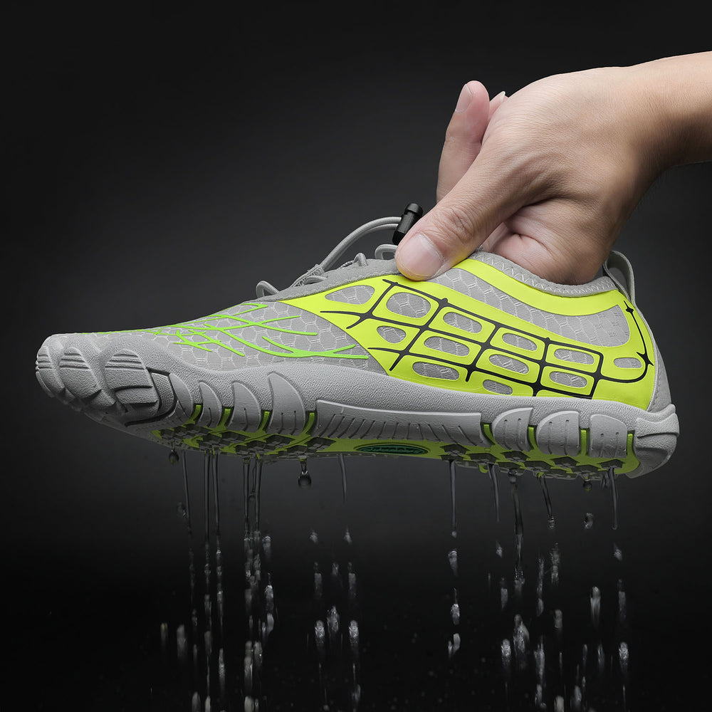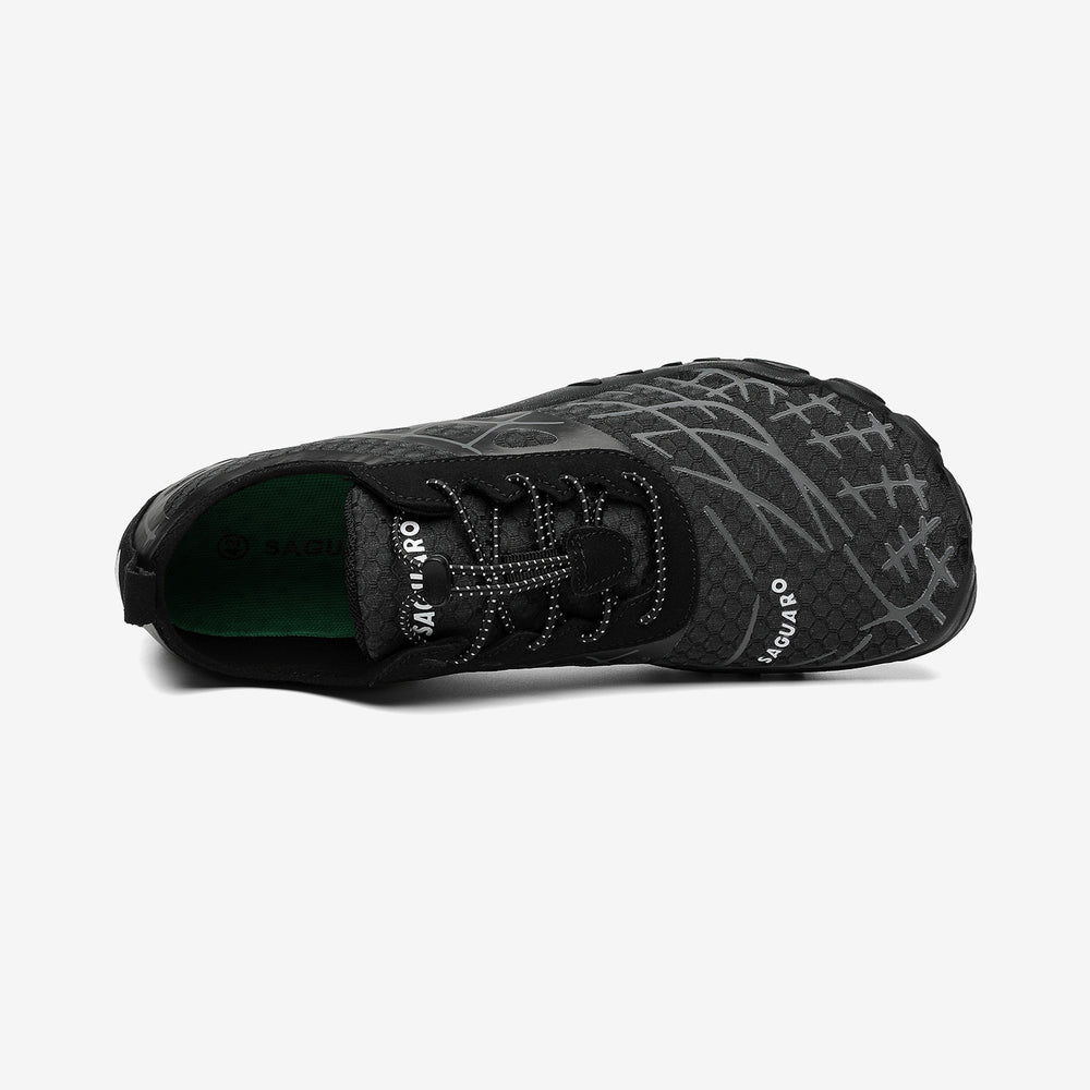 Das Wichtigste beim Tragen von Barfußschuhen ist, wie Sie sich beim Laufen fühlen. Mit unseren speziellen Saguaro-Sohlen können Läufer jeden Reiz vom Boden bis in die Füße hinein wahrnehmen und alles so erleben, als würde er direkt in die einzelnen Nervenenden übertragen, die wiederum Muskeln stimulieren, die von Gehirnzellen gesteuert werden, die wiederum Signale nach außen senden und steuern, was als Nächstes mit der Bewegung oder der Körperhaltung geschieht. Darüber hinaus schützt diese Konstruktion auch vor Verletzungen, da beim Laufen nichts zwischen den Hautoberflächen liegt, was eine mögliche Kontamination verhindert.